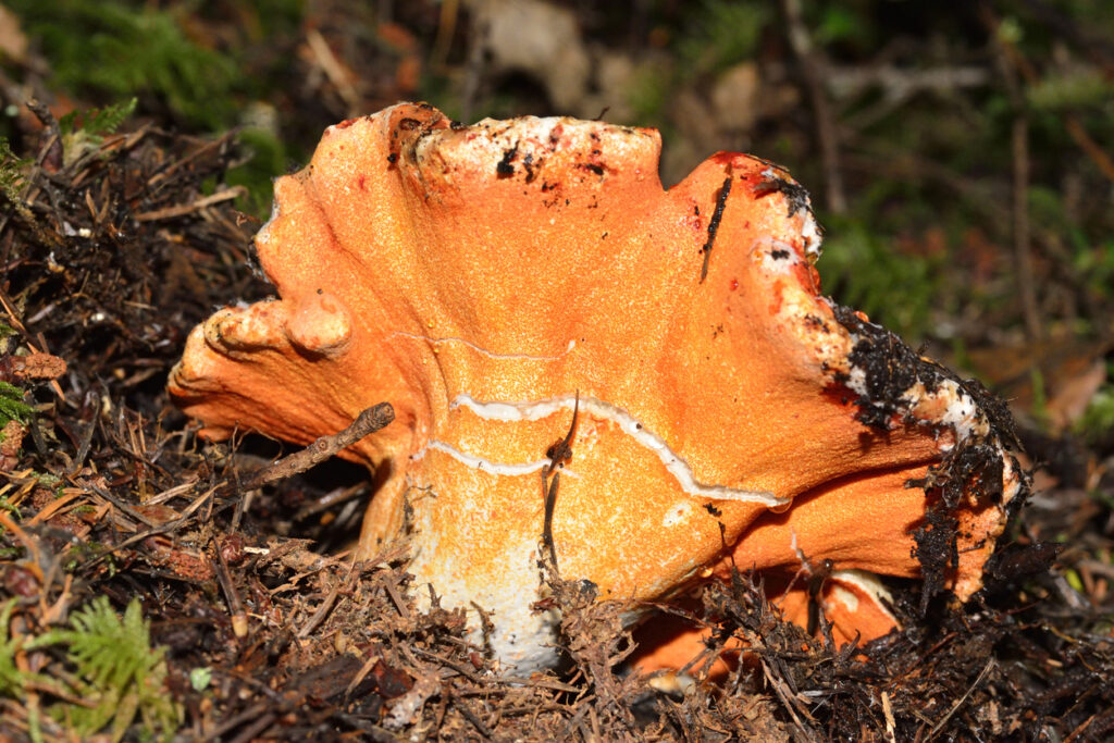 Habitat & tree associations: In BC, lobster mushrooms most often turn up in conifer-dominated forests, especially where you’ll find trees like Douglas fir, western hemlock and cedar. They are particularly associated with the host species Russula brevipes (the short-stemmed russula) among others. They also show up in semi-disturbed forest patches: along old logging roads, near trails or areas with loose organic forest floor material.