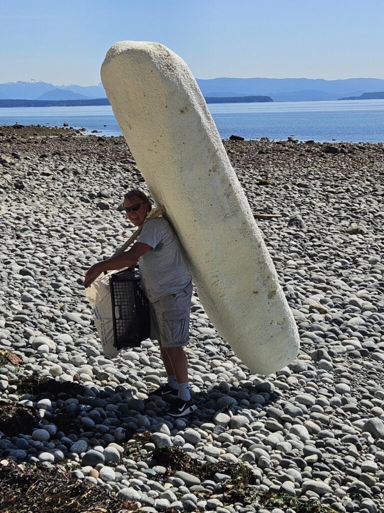 My wife, Heather, and I began cleaning beaches on our own, hauling what we collected to the Campbell River landfill at our own expense. Later, we learned about free tipping permits through Comox Valley Waste Management, though ferry fares and fuel costs remained out of pocket.