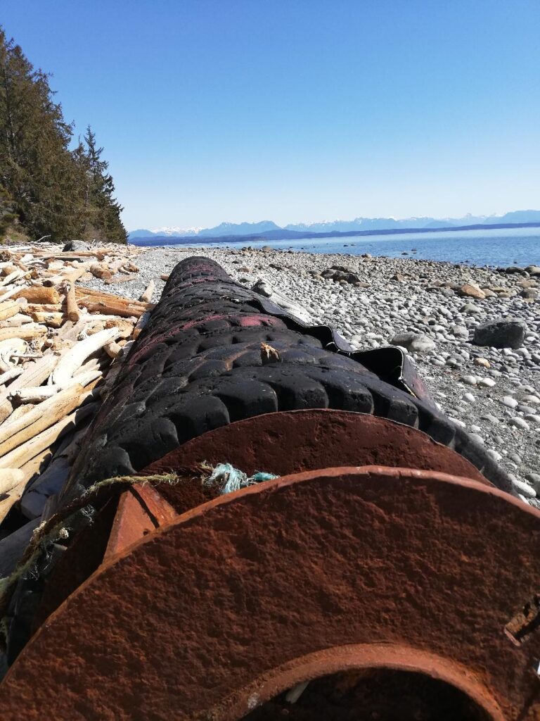 Quadra Island’s eastern shoreline is particularly vulnerable. From Cape Mudge and Francisco Point to Rebecca Spit Provincial Park, Hyacinthe Bay, Open Bay and Bold Bay, debris collects on our rugged shores, where it is ground into smaller and smaller pieces. We have found items indicating sources as far away as Bellingham, Vancouver, Bowen Island, Ladysmith, Baynes Sound and Nanaimo – including a large garbage bin.