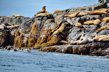 Where Haida Gwaii tapers to a storm-scoured point, a scatter of low, wave-washed rocks called the Kerouard Islands cradles one...