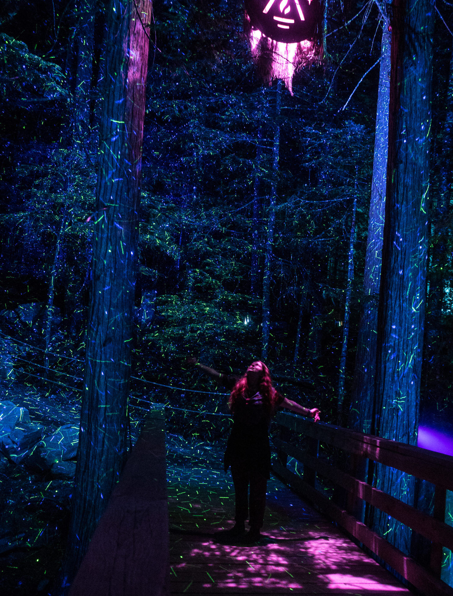 Vallea Lumina is a newer addition to the mountain—but it’s one of those kinds of tourist-oriented places that as locals we never seem to get to. Developed by Quebec’s Moment Factory, which is rapidly becoming famous for its enchanting night walks, Whistler’s Adventure Group version unfolds as a magical story about a hidden valley.